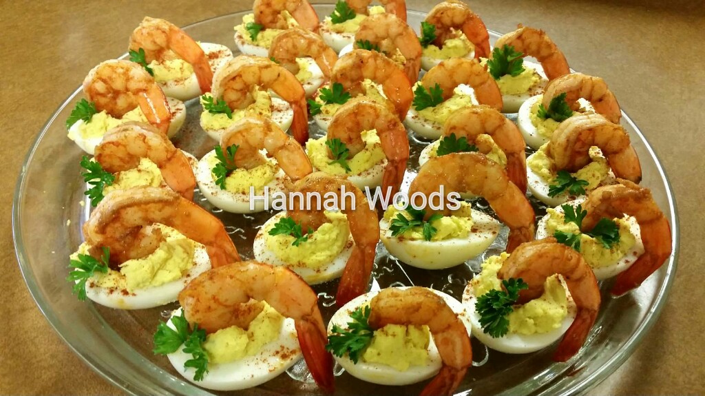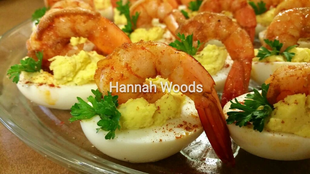 Boil eggs for 15 minutes with salt. Peel off shells, slice the eggs in half lengthwise and take out the cooked yolks. Mix the yolks with a good amount of mayonnaise, dash of yellow mustard, dash of apple cider vinegar, dash of fresh lemon juice, salt, pepper, garlic & basil. Add the mix back into the egg whites. Sprinkle ground paprika over top. Add bacon pieces, chives and parsley.