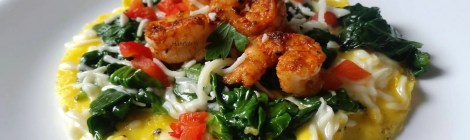 Shrimp Omelette with Spinach, Red Bell Peppers & Mozzarella Cheese